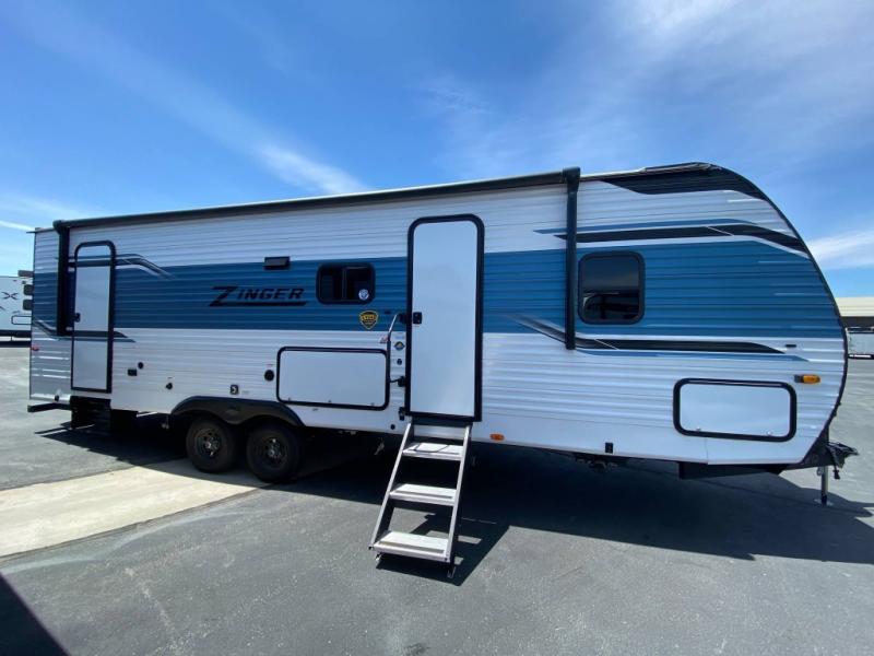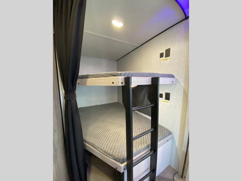 The 2024 CrossRoads Zinger ZR270BH is the perfect travel trailer for families who want space, comfort, and functionality in one well-designed RV. This bunkhouse model offers double-over-double rear bunks, a private front bedroom, and a roomy booth dinette and jackknife sofa—making it ideal for family adventures or group camping trips.
