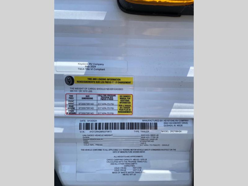 With features like the power awning, power tongue jack, and Arctic Package, this trailer is ready for all-season travel. Lightweight yet roomy, the ZR270BH is built for durability, convenience, and comfort wherever the road takes you.
