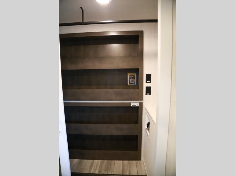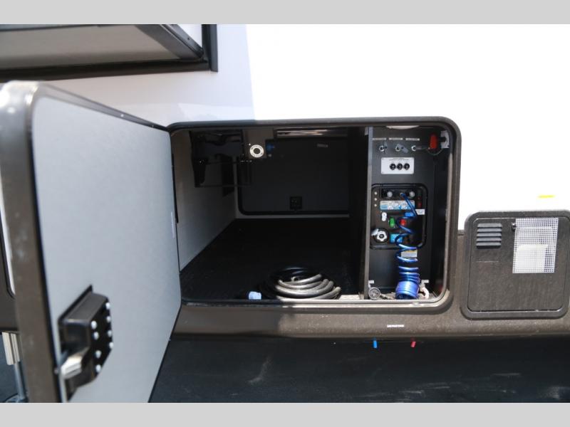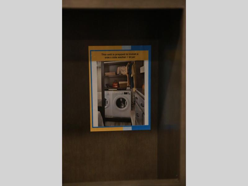 Retreat to the private master bedroom with a king bed slide, large front wardrobe, washer/dryer prep, and dresser for extended stays. Built on a durable aluminum-framed structure with a vacuum-bonded laminated exterior, this RV ensures year-round comfort thanks to the Climate Control Package and superior insulation.