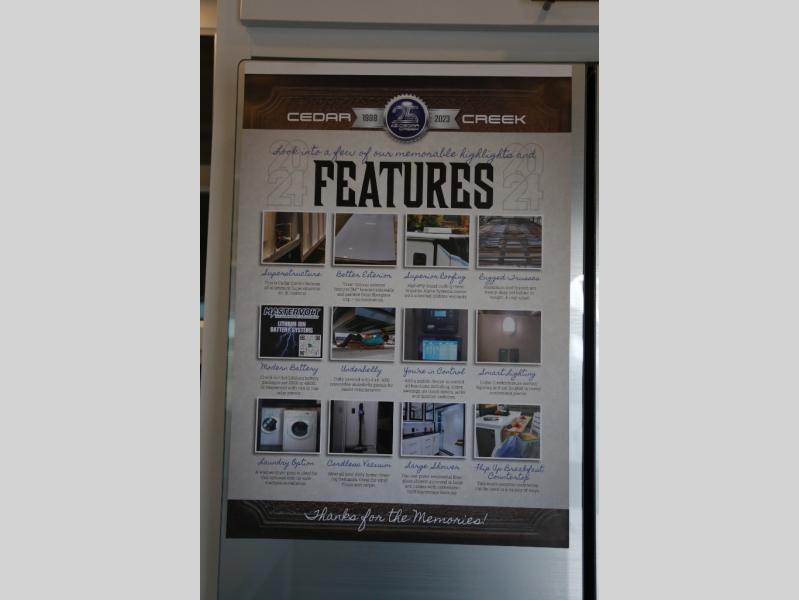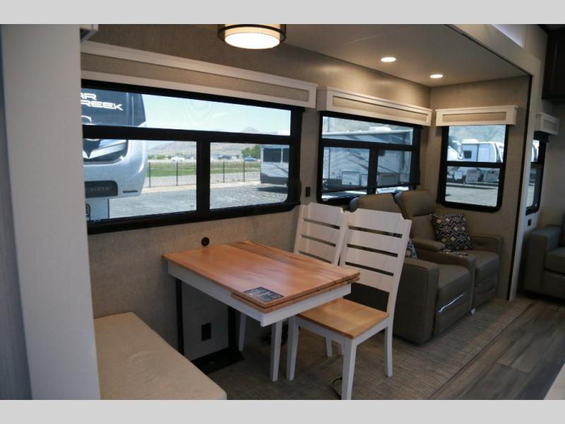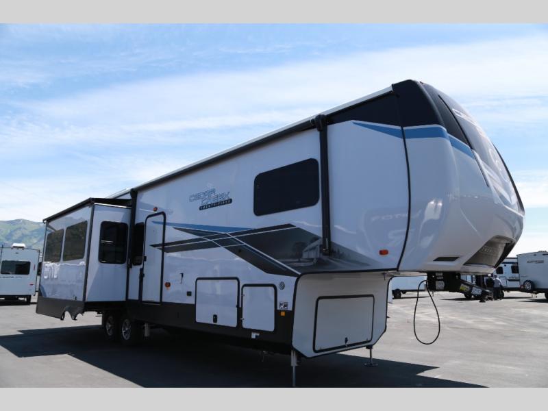 Whether you're planning seasonal travel or full-time living, the Cedar Creek 360RL delivers unmatched quality, storage, and luxury touches throughout.
