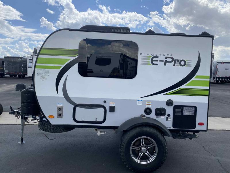 The Forest River Flagstaff E-Pro travel trailers have been built to be towed by plenty of fuel-efficient vehicles and smaller SUVs. The E-Pro comes with a reliable list of standard features, like a 6-sided aluminum cage construction, nitro-filled radial tires, and a tire pressure monitoring system. Plus, you will find a Water-Pur filtration system and a WiFi Ranger Sky 4 WiFi Booster to keep you connected. Come choose your favorite Flagstaff E-Pro and start exploring the world!