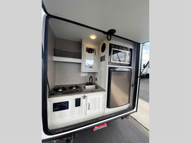 Get up and go at a moment's notice with this Flagstaff E-Pro travel trailer! You will be thrilled to find so many conveniences packed into this compact and portable unit. The outdoor kitchen will give you a chance to breath in the fresh air while you cook up dinner each night, and the exterior storage will allow you to bring along coolers, lawn chairs, plus other fun camping equipment. And the 74" gaucho will be a comfortable place to read a book during the day and a relaxing bed for two at night.