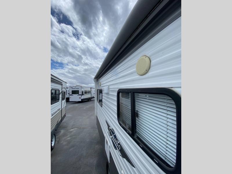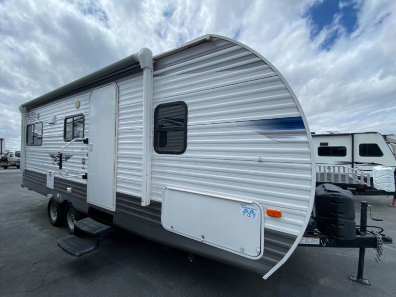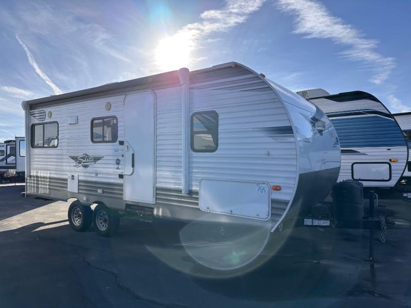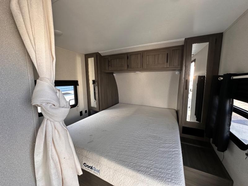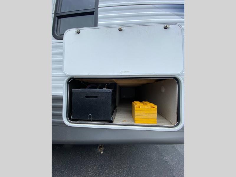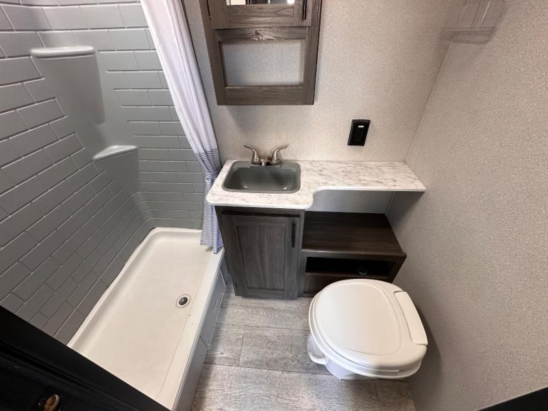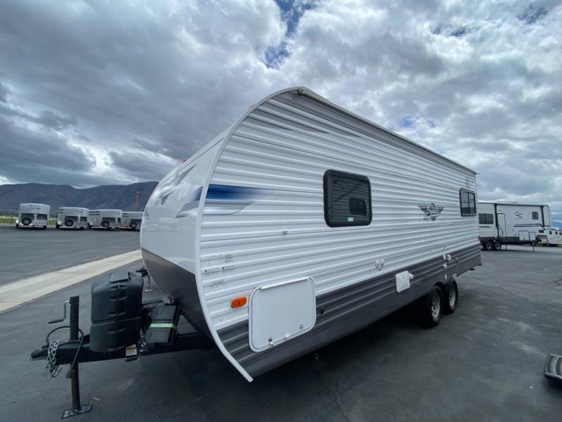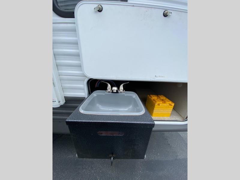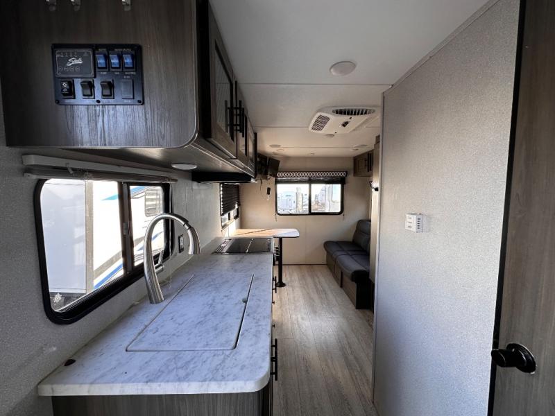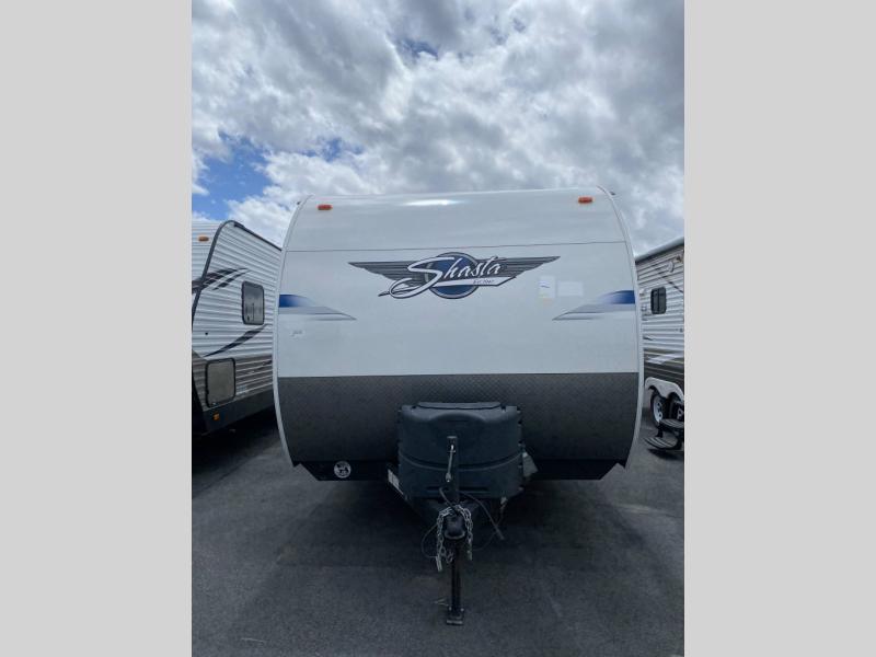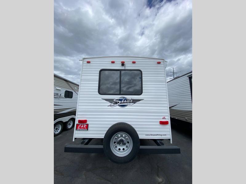 2021 Forest River RV Shasta 21CK is an ideal travel trailer for ½ ton towing. At 3980 lbs empty, 500 lbs hitch weight, it offers an abundance of features including sleeping for 4-6, large panoramic views, with the large windows in the rear of the trailer and a sanitation center outside. Walk around queen bed up front. Very comfortable and easy to get into almost any camp spot.