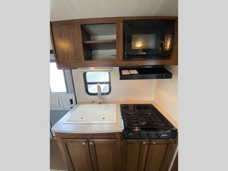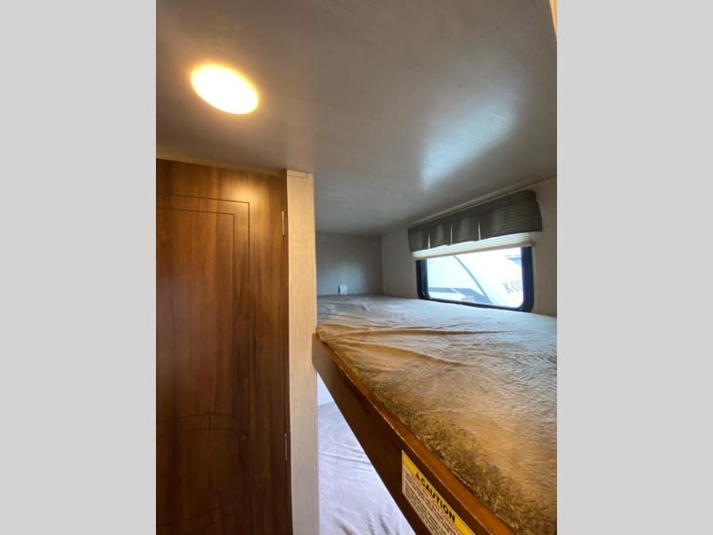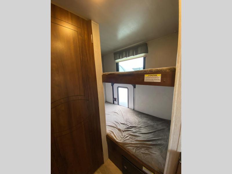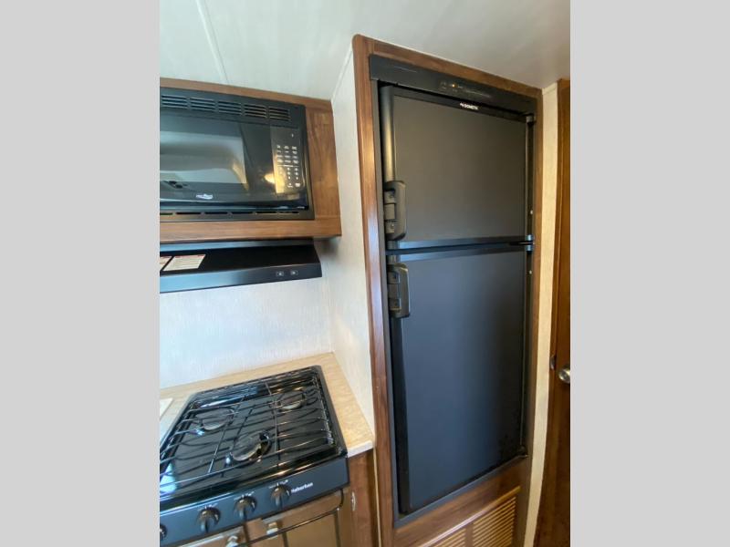 This Mallard Ultra Lite travel trailer is a dream come true for outdoor adventurers. With its set of bunk beds and queen-size bed, you have plenty of comfortable sleeping options to look forward to as you explore during the day, and as you work up an appetite while climbing mountains and hiking trails, you will certainly appreciate the amount of features that have been included in this trailer's kitchen, like the 3-burner range top and 6 cubic foot double-door refrigerator, plus a booth dinette for you to enjoy your meals at or transform into an extra sleeping space. If you still want more of the great outdoors after returning back to your trailer at night, you can spend your time outside underneath the power awning with LED lights as you gather around the campfire and tell ghost stories.