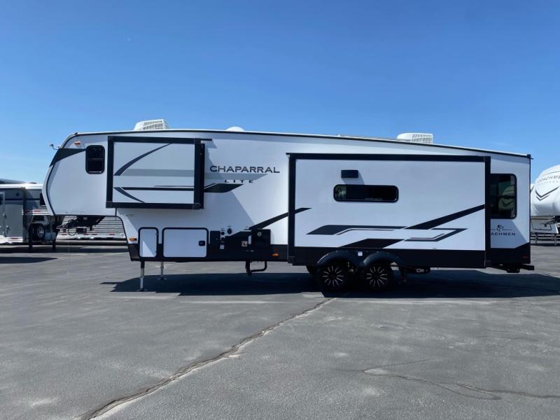 Comfort, convenience, and an easy haul is what you will find with each one of these Coachmen RV Chaparral Lite fifth wheels! Their Tri-Tex powder coated frame technology is up to 5X more weather resistant, and the dual-sided Azdel composite sidewall panels are ultra durable. The Road Armor suspension by Trail Air comes with heavy duty shackles and wet bolts so you can be sure it will hold up through every adventure, and you might want to add the exterior back-up and sideview camera prep for easy parking. You will feel right at home inside with slow rise blackout roller night shades, an upgraded Carbon and Walnut entertainment center, a modern high-rise kitchen faucet, and many more comforts! The exterior is just as inviting with its electric awning with LED lights, Solid Step entry steps, and pass-through storage for all your gear!