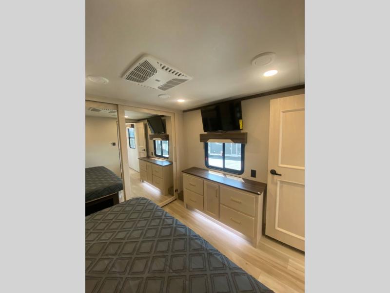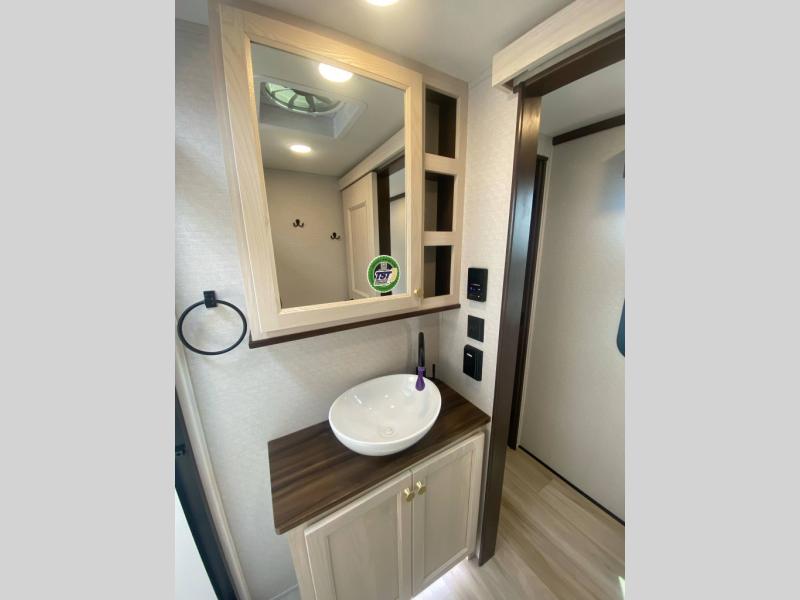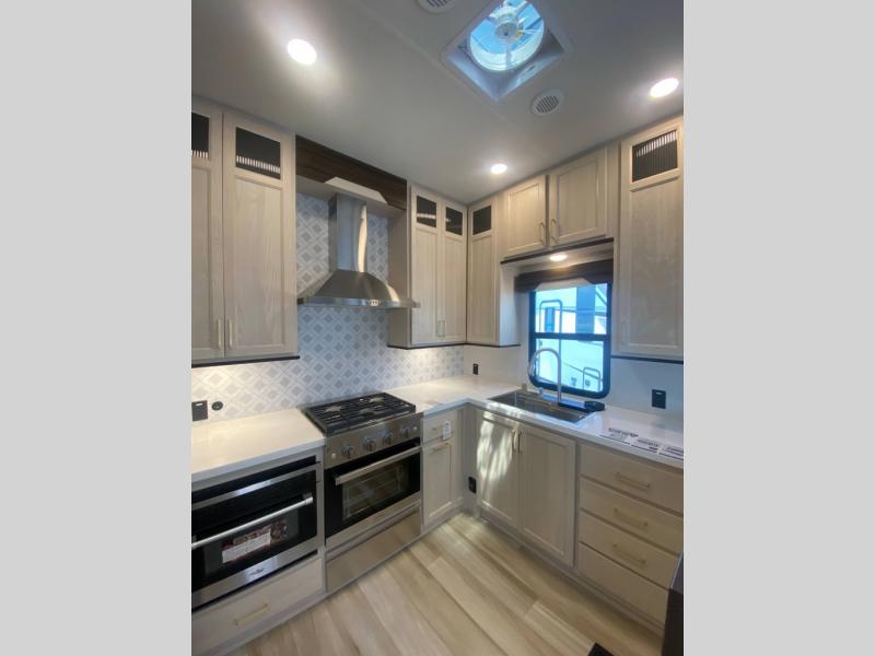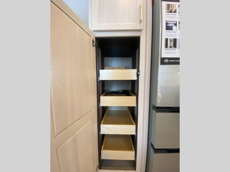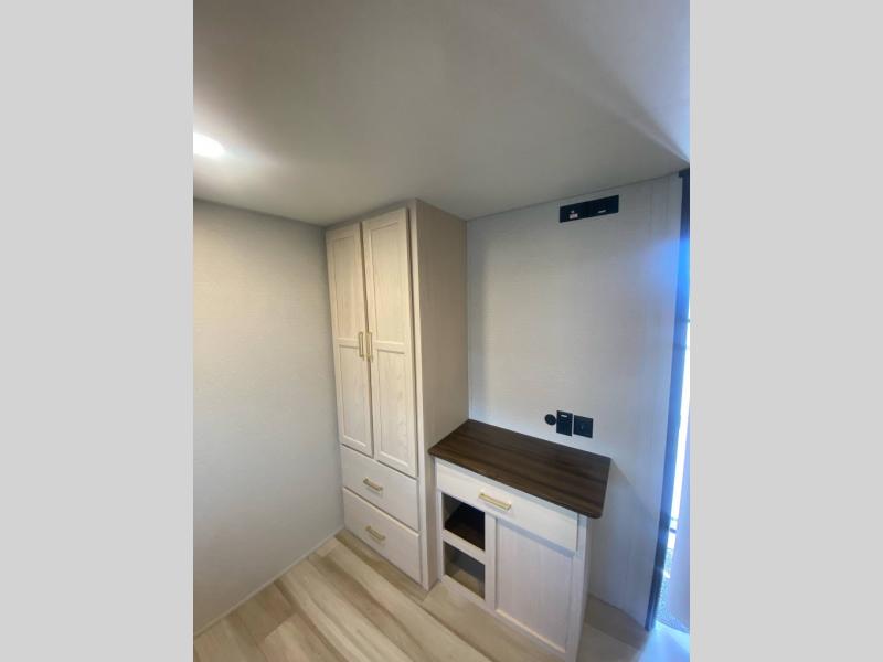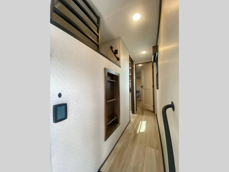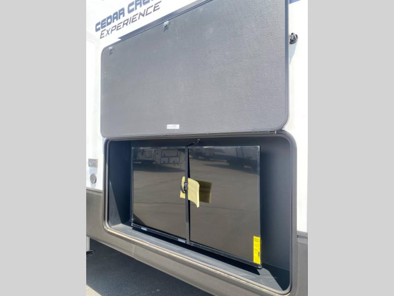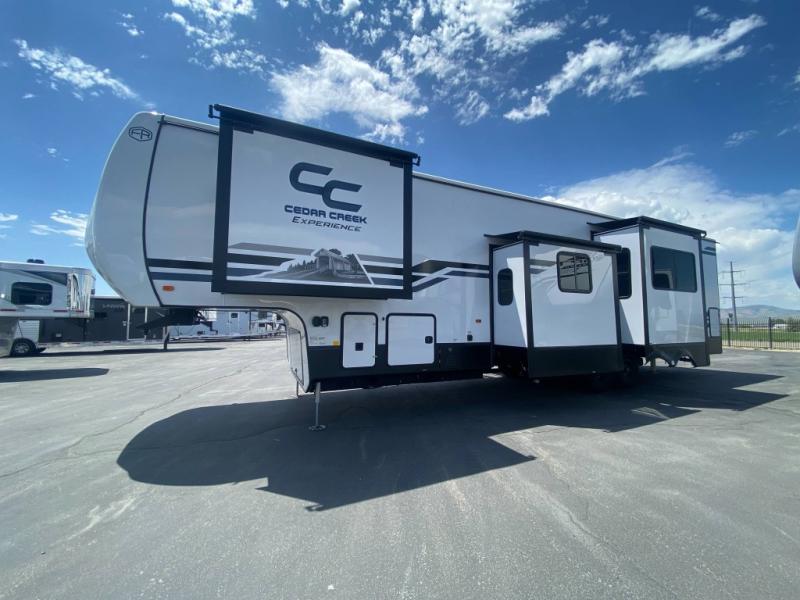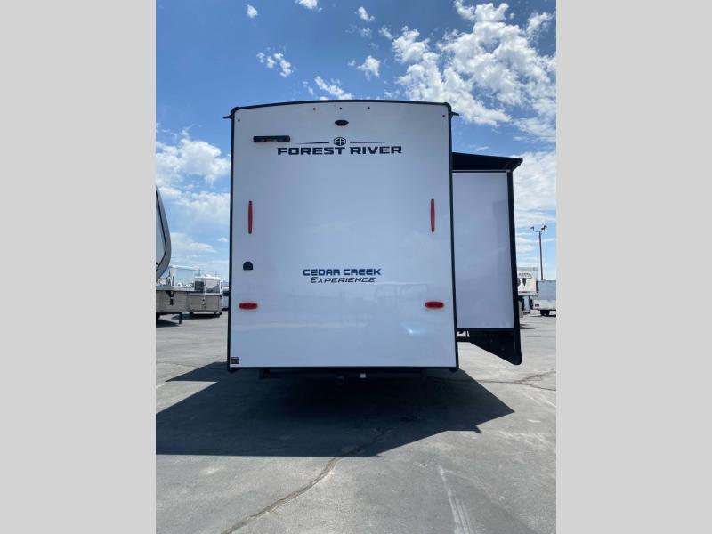 With any Cedar Creek Experience fifth wheel by Forest River, you will bet met with luxury features both inside and out! The True Gelcoat exterior is the best of the best in exteriors and the 3M bonded sidewalls will hold up over years of use. There is also a new 101'' wide-body frame, a Road Warrior suspension, plus a TST tire pressure monitoring system to make towing that much easier. You will find a hidden front storage compartment, along with a 4' x 6' ABS, ribbed, removable underbelly panels, and 6-point hydraulic leveling system, plus many more exterior conveniences. The interior will have you feeling like you haven't left home with vinyl floor coverings, power theater seating with USB ports, a cozy fireplace, vinyl floor covering and the list of comforts goes on! Each model is also pre-wired for satellite to the roof, and you're sure to never go bored with a Smart TV in the bedroom!